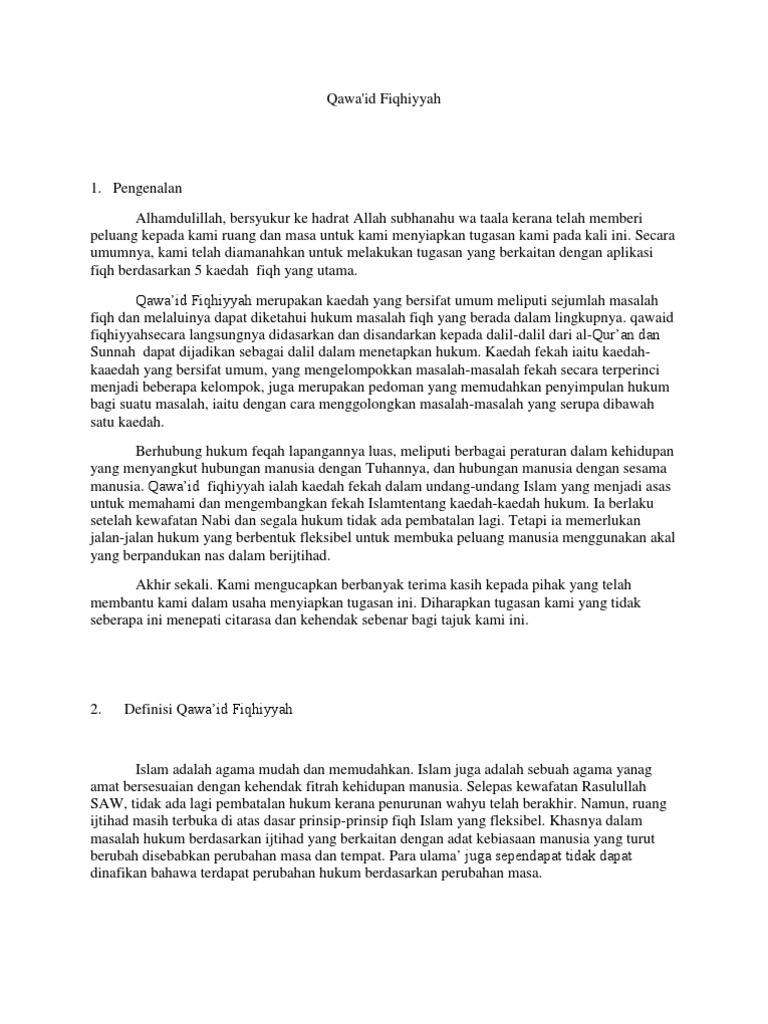 1 sesi 1 qawaid fiqhiyyah. These rules are evident in the as indicated in qawaid fiqhiyyah, the intensions behind an action form the main rationale for judging such an act. Skip to main | skip to sidebar. (كل ما شهد به العاده قضى به) bermaksud: Pengenalan qawaid fiqhiyyah merupakan gabungan daripada dua perkataan iaitu qawaid dan fiqhiyyah.