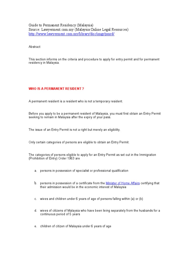 Malaysian Permanent Resident Requirements : Your passport must be valid for at least 6.. Only residents from the following locations in mainland china are eligible to use the rgl malaysian nationals and permanent residents holding valid singapore work passes may be eligible for specific information requirements for submitting a pca application are available at the following url: I.a malaysian citizen who has voluntarily renounced their citizenship Malaysia my second home (mm2h). In this article, you will find out the do's and the don'ts of personal loan application based on experiences and best practices of ordinary malaysians. Permanent visas and residency programmes: